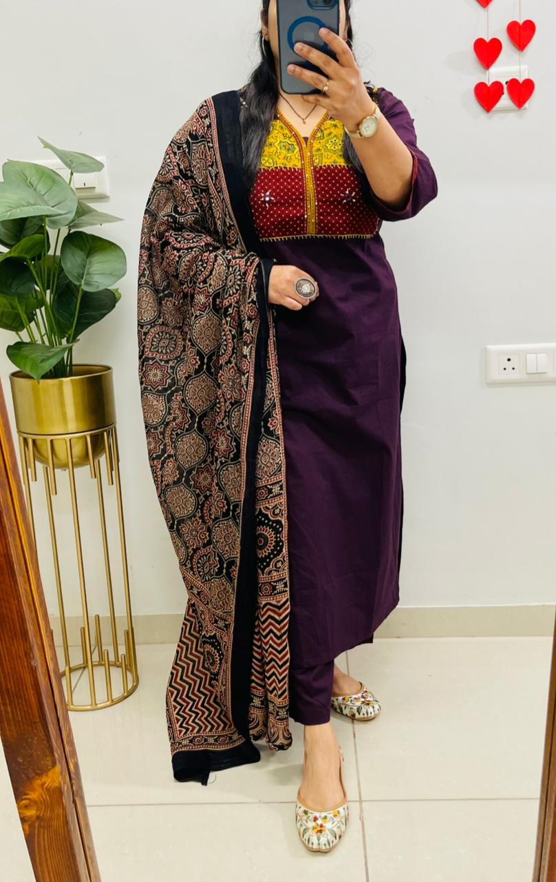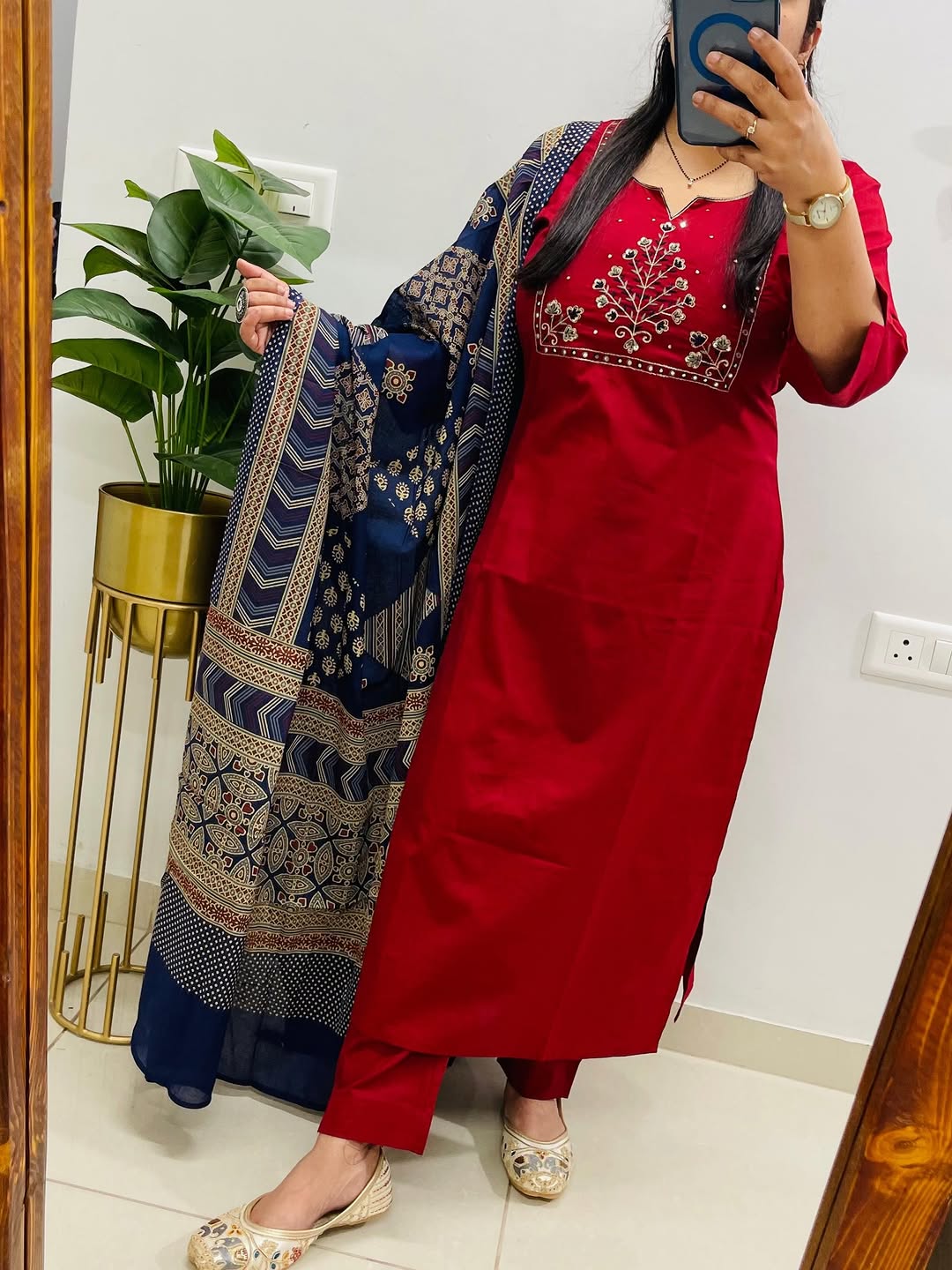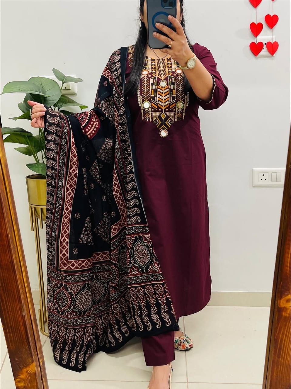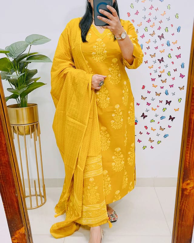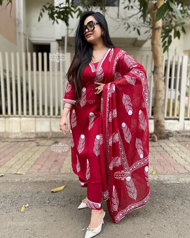 🌹🌹Pure fine Cotton fabric Kurti with Pant with cotton 100-100 Dupatta. *Nack Printex work